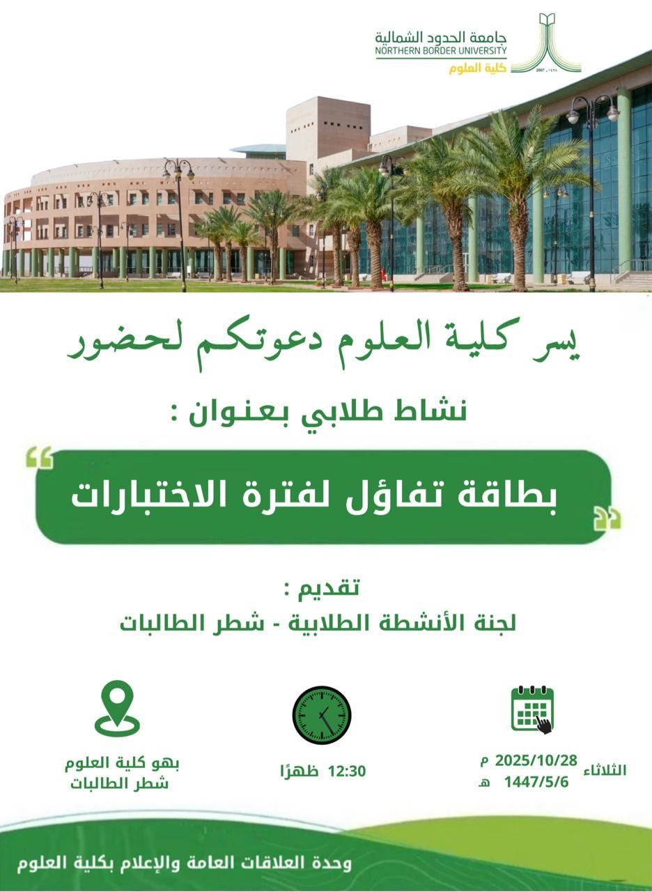 يسر كلية العلوم ممثلة بقسم علوم الأحياء دعوتكم لحضور ورشة العمل المقامة غداً بعنوان تهيئة البيئة التعليمية داخل المعامل. الساعة ١١ صباحاً.
