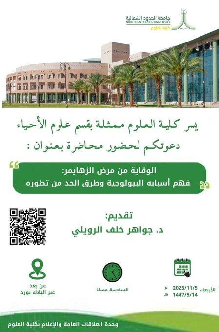 يسر كلية العلوم ممثلة بقسم علوم الحاسبات، دعوتكم لحضور لقاء ضمن مبادرة الذكاء الاصطناعي جسر بين التخصصات والمجتمع، بعنوان: الموظف الإداري والذكاء الاصطناعي 06 جمادى الأول 1447
