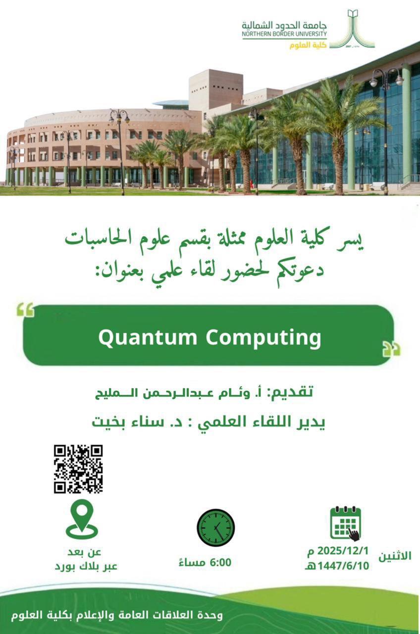 يسر كلية العلوم ممثلة بقسم علوم الحاسبات دعوتكم لحضور دورة بعنوان علوم الحاسبات من الاستدلال حتى الرسائل العلمية وذلك في يوم الجمعة الموافق ٢١-١١-٢٠٢٥م الساعة ٧ مساءً عن بعد.