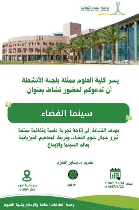 يسر كلية العلوم ممثلة بقسم الفيزياء وبالتعاون مع لجنة الأنشطة الطلابية في الكلية ، دعوتكم لحضور محاضرة بعنوان:كيف يؤثر القمر في حياتنا والتي ستُقام يوم غدٍ الثلاثاء الموافق ٢٠٢٥/١٠/١٤م في تمام الساعة الثانية عشر ظهراً. 21 ربيع الثاني 1447