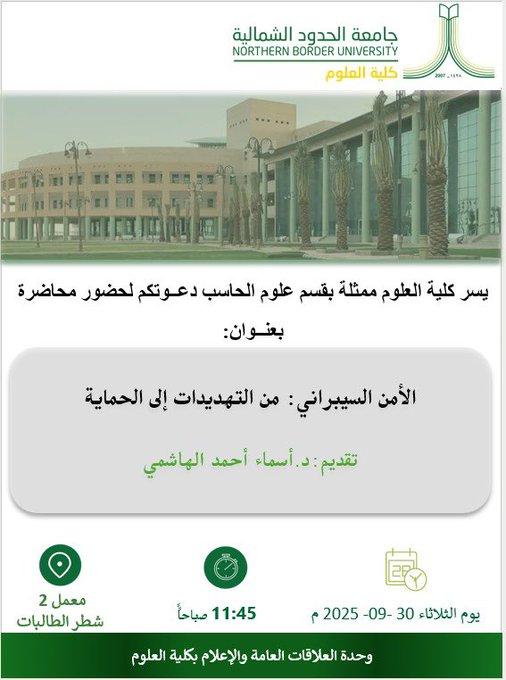 يسر كلية العلوم ممثلة بقسم الرياضيات دعوتكم لحضور محاضرة بعنوان: كيف تجتاز المقابلة الشخصية، تقديم: د. مصطفى العشيري 08 ربيع الثاني 1447