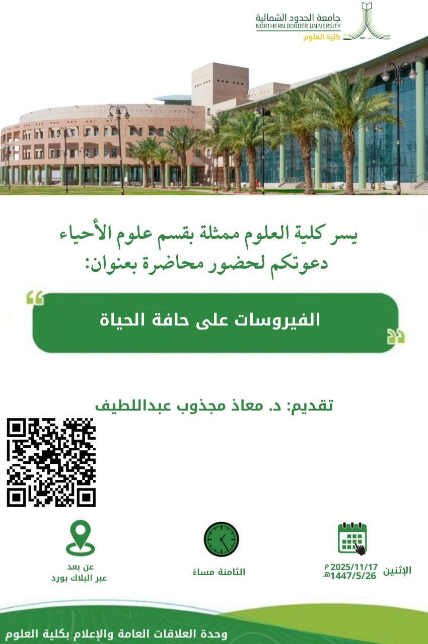 يسر كلية العلوم دعوة جميع الطالبات لحضور اللقاء المفتوح مع سعادة عميد الكلية في يوم الإثنين الموافق ١٧-١١-٢٠٢٥م الساعة ١١.٣٠ صباحاً.