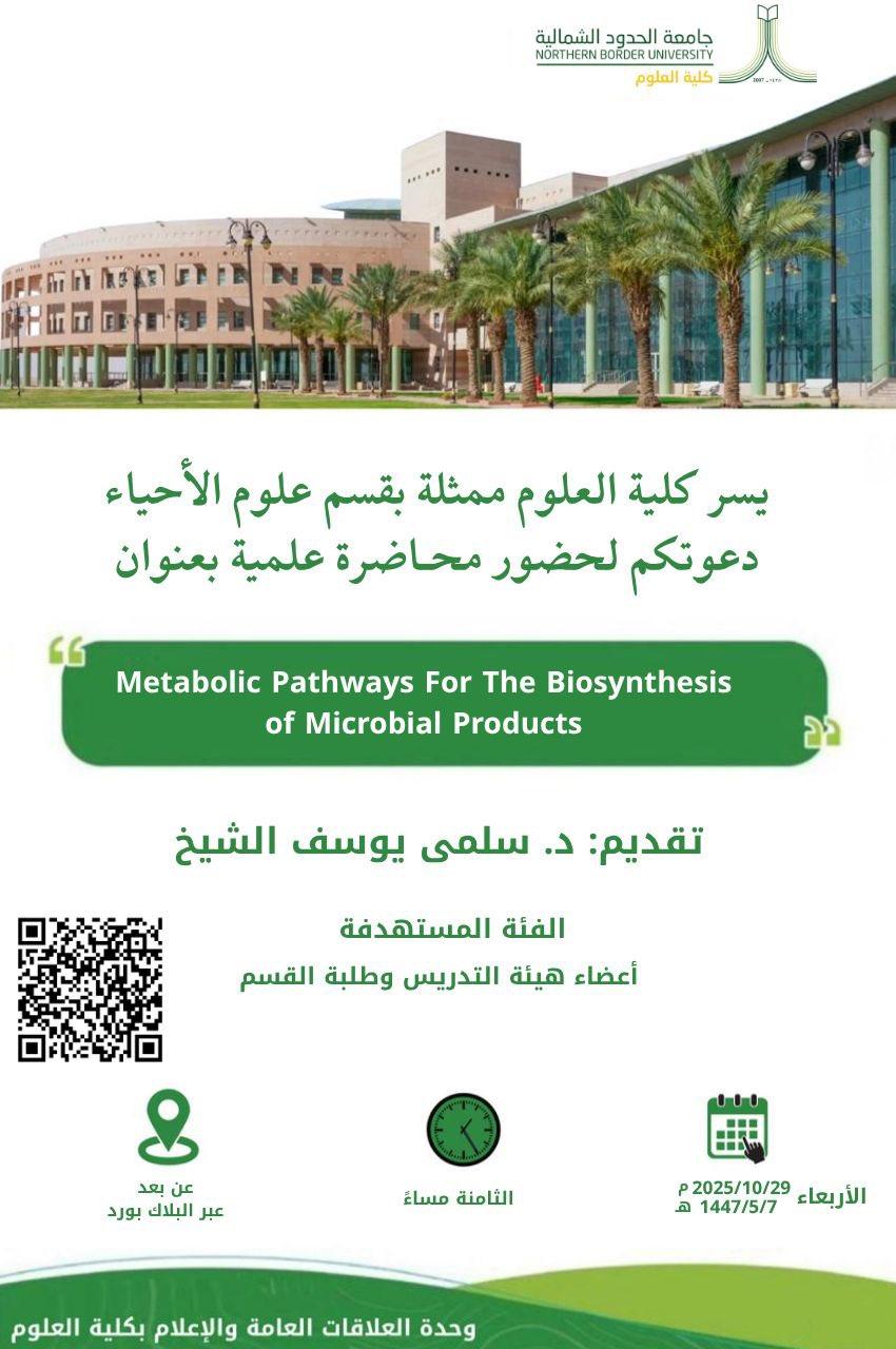 يسر كلية العلوم ممثلة بقسم علوم الأحياء دعوتكم لحضور لقاء علمي بعنوان: التخليق الحيوي للحبيبات النانونية بواسطة الفطريات 06 جمادى الأول 1447