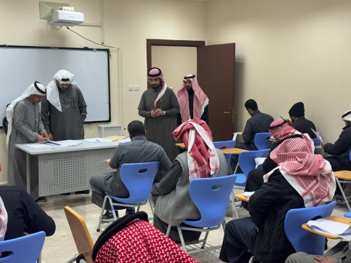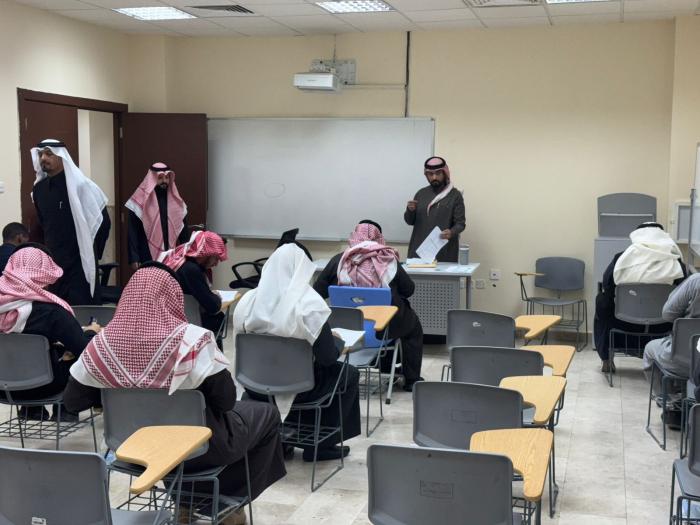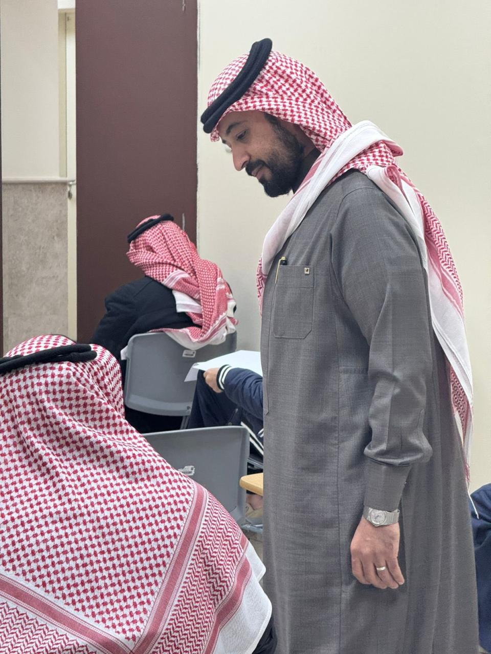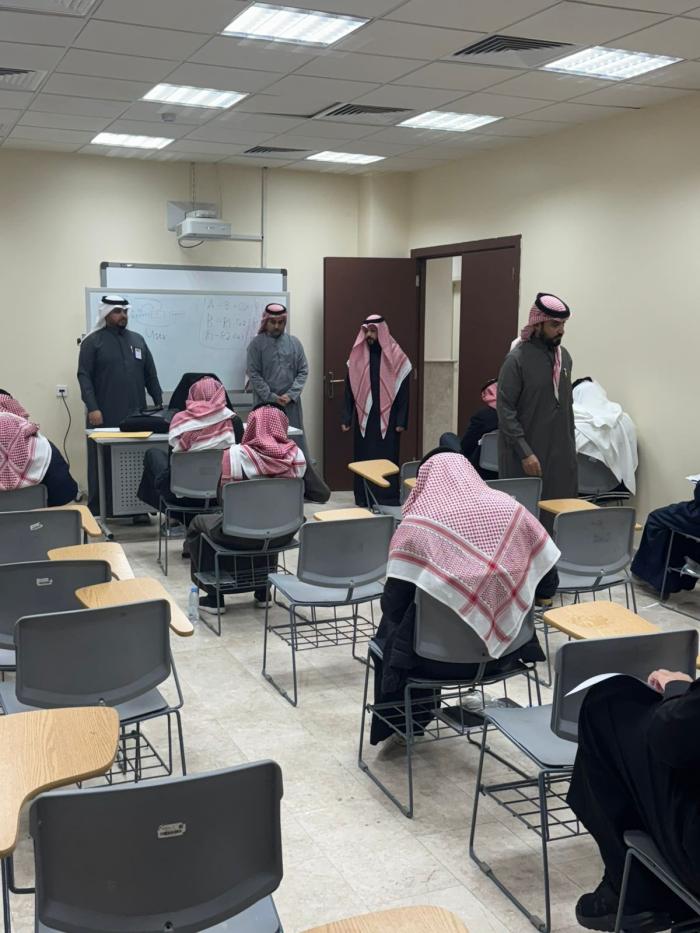 Science College Dean, Dr. Ahmed Marshed Alhomoud following up on Upper Education students’ final exams for the first term, approving the provided conditions and high discipline procedures, which also provides the best conditions for students and academic assessment reliability.