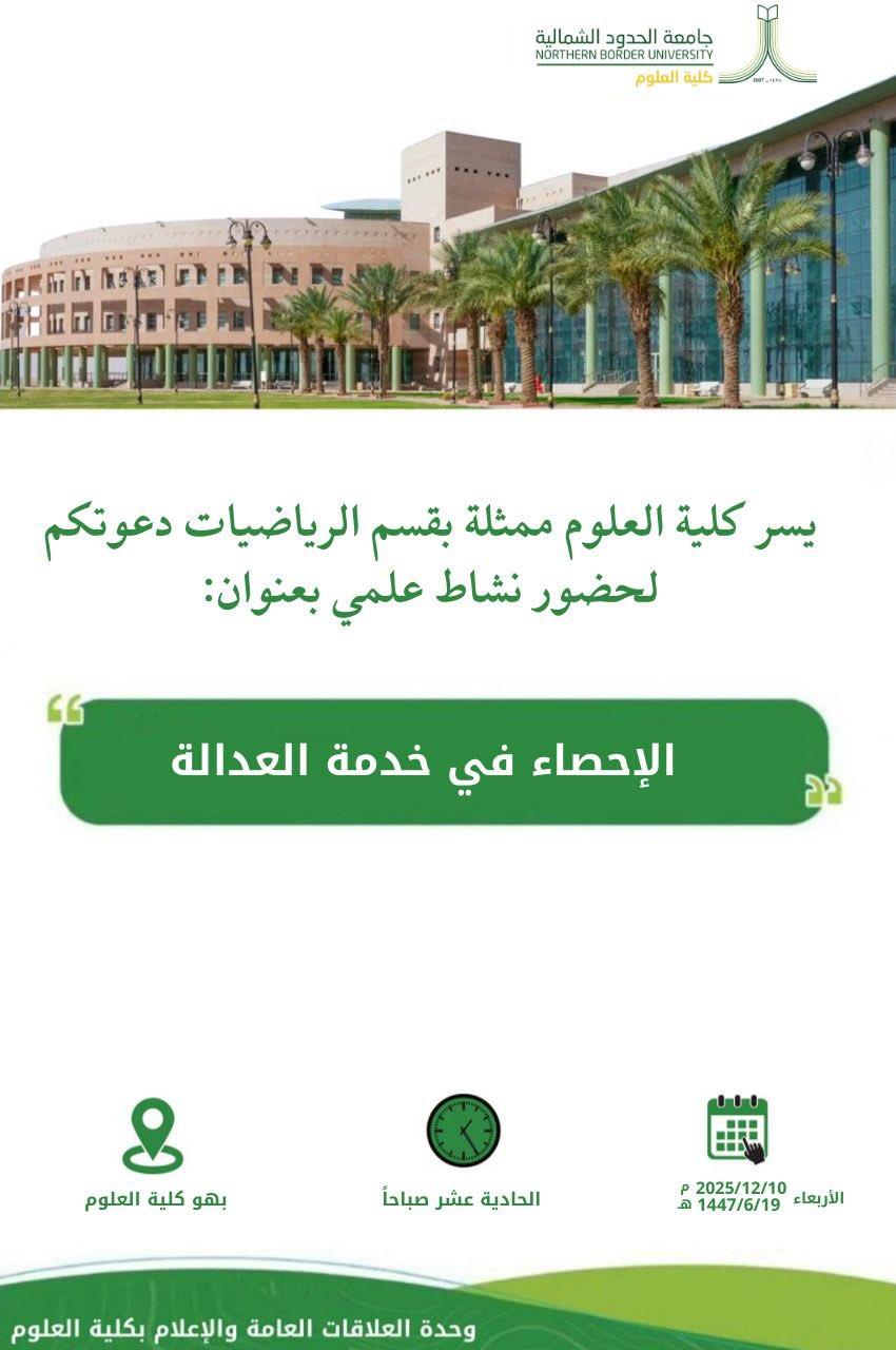 يسرُّ كلية العلوم ممثلة بقسم الرياضيات دعوتكم لحضور محاضرة بِعنوان: بين ارجوحة الجمال والجريمة وذلك في يوم الأربعاء الموافق ١٠-١٢-٢٠٢٥م الساعة ١٢ ظهراً.