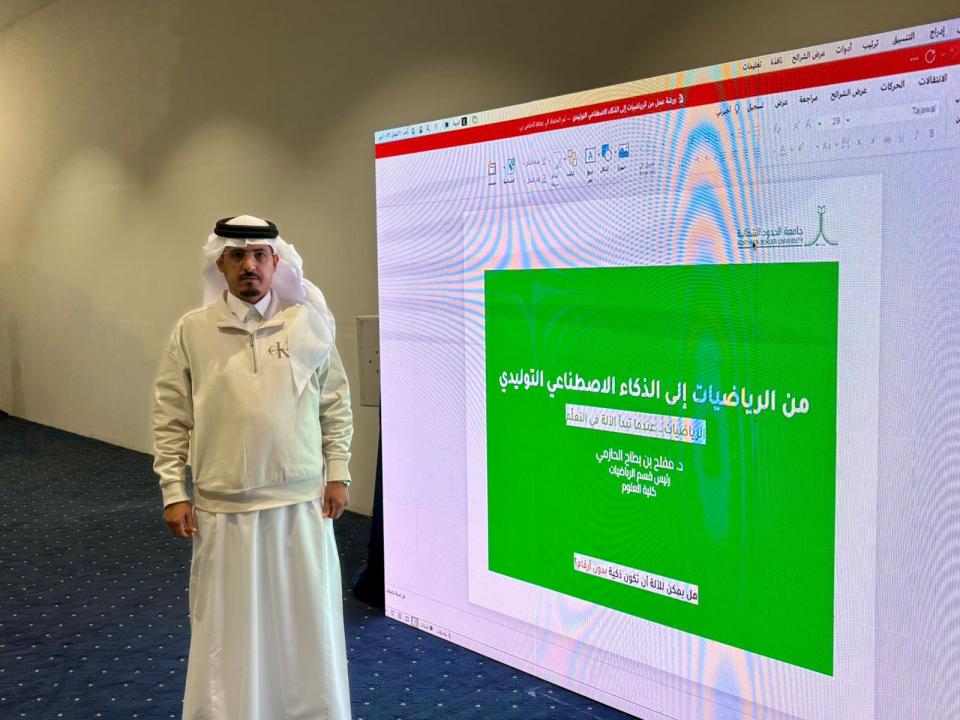ضمن فعاليات مهرجان الرياضيات لغة العلوم ٢٠٢٦، قدّمت كلية العلوم بـجامعة الحدود الشمالية ممثلةً بـقسم الرياضيات ورشة عمل بعنوان: من الرياضيات إلى الذكاء الاصطناعي التوليدي، حيث تتحوّل المعادلات إلى نماذج… وتبدأ الآلة في التعلّم.