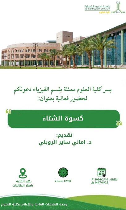 يسر كلية العلوم ممثلة بقسم الفيزياء دعوتكم لحضور محاضرة بعنوان Astronomical Telescopes والتي ستقام يوم الأربعاء القادم الساعة ٦ مساءً عن بعد.